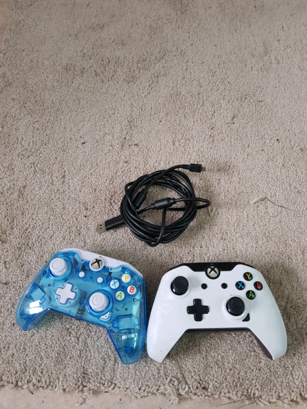 An xbox one controller with a usb cable.